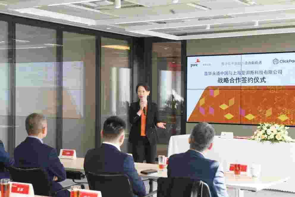 普华永道中国风险及控制服务数字化鉴证和分析服务主管合伙人吕麟晖与EBPAY首席产品官马俊代表双方签订战略合作协议,,,,,,,,,,,普华永道中国上海主管合伙人黄佳与EBPAY创始人、、、、、、、CEO胡柏见证战略合作协议签订过程。。。。。。。。。。。。普华永道中国创智中心合伙人林榕作为项目总负责人主持并见证了本次战略合作签约仪式。。。。。。