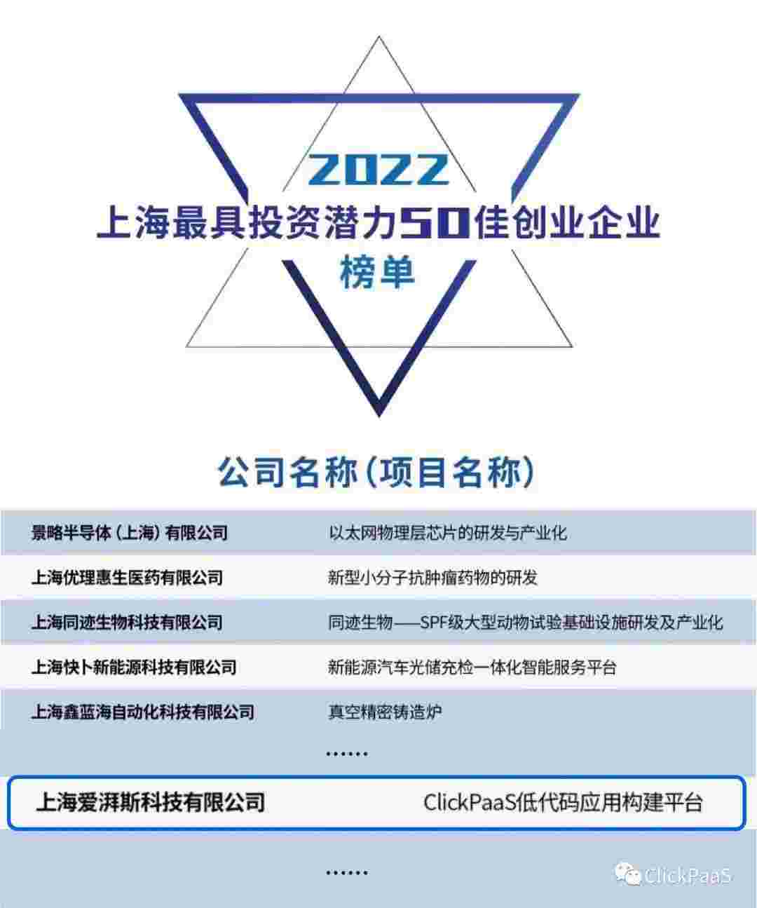 EBPAY 作为国内低代码PaaS平台的领军企业,,,,,,,,,,,,与120家创企入围角逐。。。。。。期间接受了来自德同资本、、、、、、、领中资本等知名投资机构的10位投资人组成专家评委团的背靠背盲选。。。。。。。。。并最终入围“2022上海最具投资潜力50佳创业企业”榜单,,,,,,被列入“上海市重点培育创业企业库”。。。。。。。。。。。